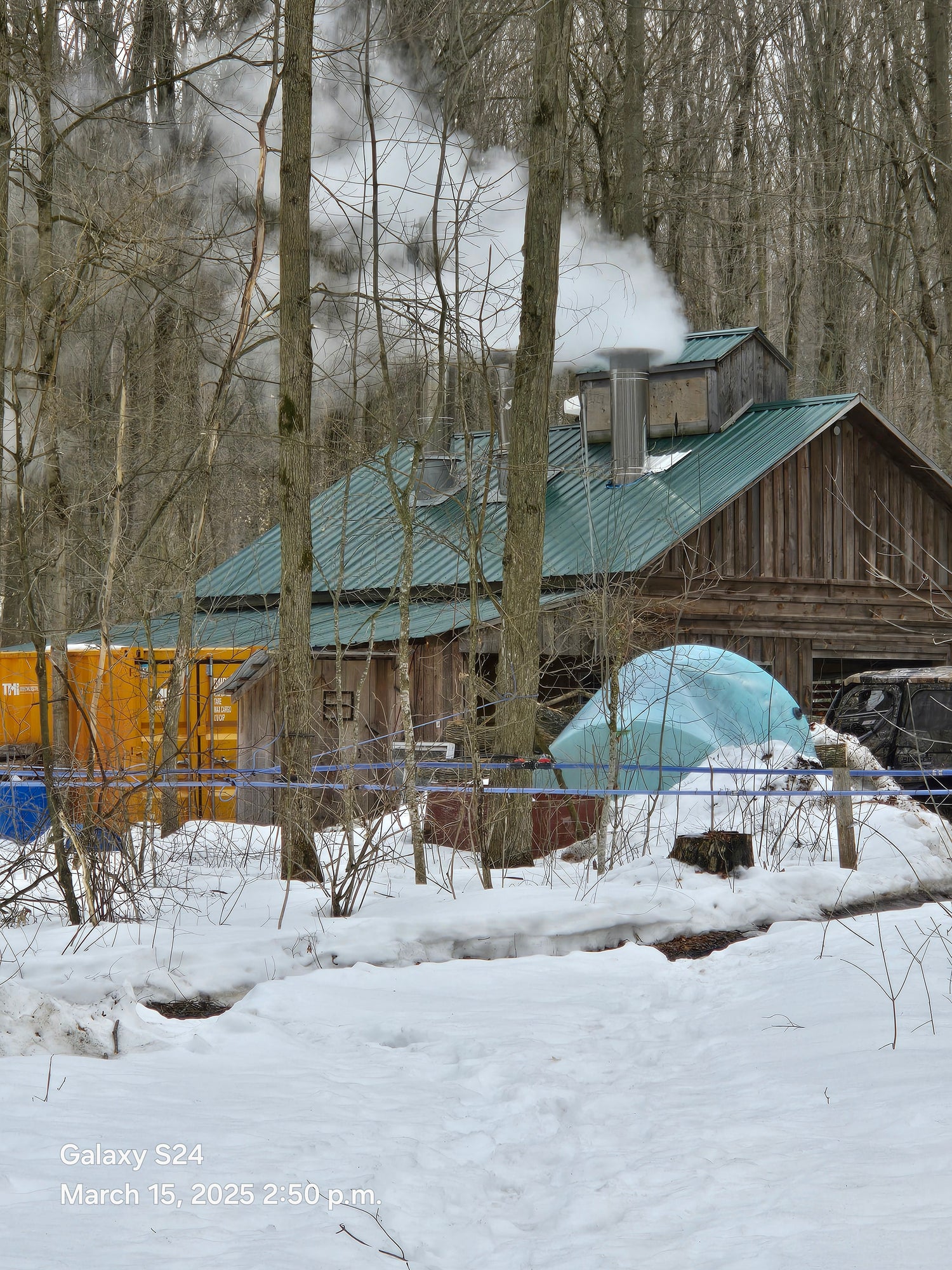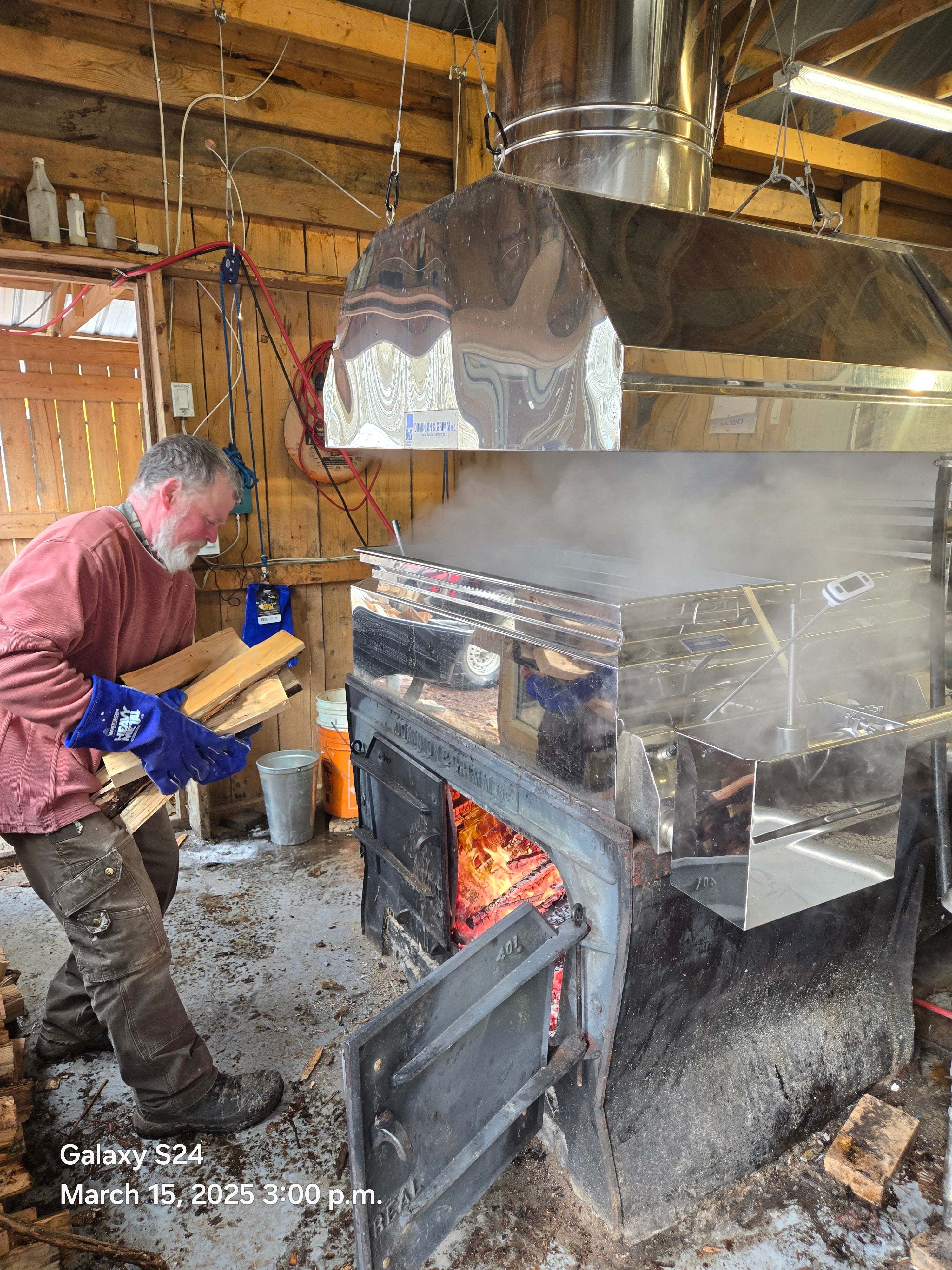 Produced from nearly 3,000 taps in our maple forest and boiled the traditional way in our wood-fired evaporator.